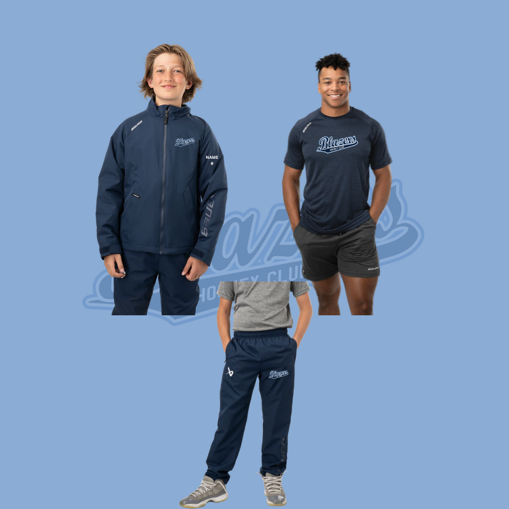 The custom Boch Blazers bundled package comes with a midweight jacket, lightweight pants and a team tech tee. This package may take 4 weeks to ship.