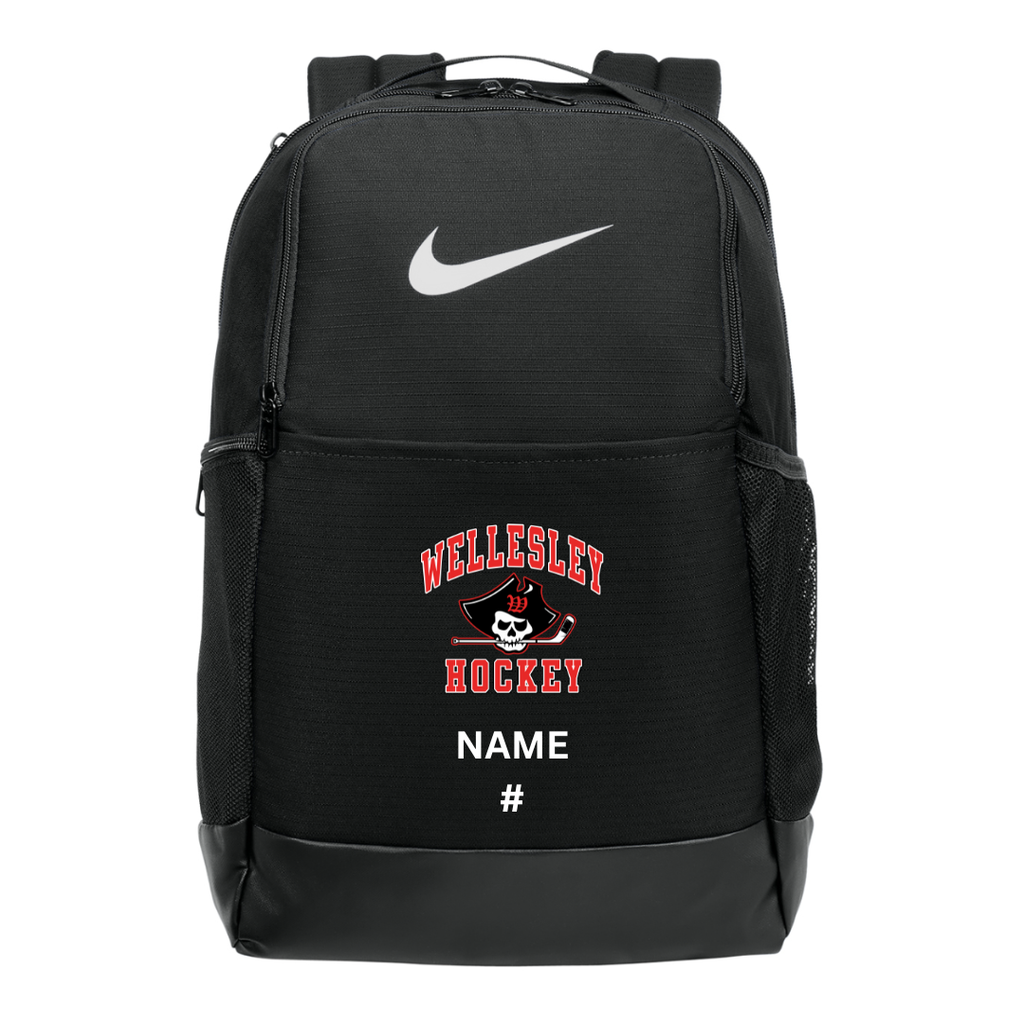 Wellesley Raider will be embriodered on the center area. This may take 3 weeks to ship.